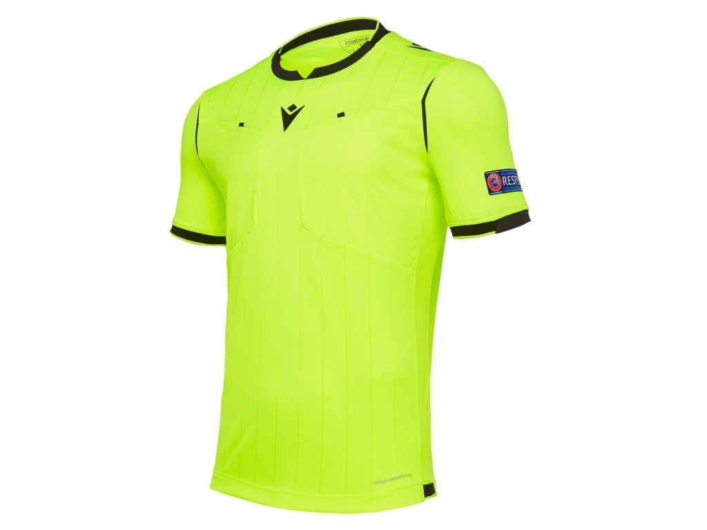 Rozhodčí dres vytvořený společností Macron pro UEFA je výherní kombinací designu a pozornosti k detailům. Kromě síťových vložek je každá část košile vyrobena z různých tkanin, což vytváří rozmanitý design. To zahrnuje měkké opláštění pro střední přední část, měkkou textilii na rukávech a předních kapsách a mikro-síť na zadní straně. Dvě velké přední kapsy se suchým zipem. Konce límce a rukávu jsou žebrované. Na levé paži vystupuje slovo „Respekt“. Toto je slogan kampaně UEFA proti rasové diskriminaci.